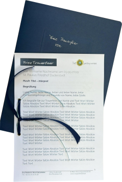 *) Preis inklusive Fahrkosten zur Abstimmung und zur Zeremonie bis 20 Kilometern um Duderstadt, zusätzliche Fahrkosten sowie Termine & telefonische Abstimmungen >3h oder zusätzliche Vereinbarungen werden separat, nach Aufwand, berechnet. Die formulierte Rede kann gern zur Erinnerung, im Anschluss an die Zeremonie, in gedruckter Form mit Präsentationsmappe, gegen eine Aufwandspauschale von 19€, angefragt werden.